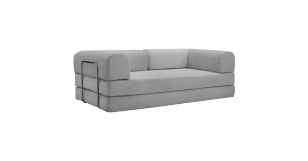 Suchst du eine stilvolle und funktionale Lösung für deine kleine Wohnung? Das modulare Bettsofa Ted in hellgrauem Cordstoff kombiniert modernes Design mit praktischer Vielseitigkeit. Geniesse tagsüber eine komfortable Sitzgelegenheit mit einer Sitzhöhe von 35 cm und einer grosszügigen Sitztiefe von 72 cm. Abends verwandelt sich das Sofa im Nu in ein gemütliches Bett mit einer Liegefläche von 204 x 208 cm. Das Bettsofa kommt ganz ohne Beine, Griffe oder sonstige mechanische Konstruktionen aus. Stattdessen besteht es aus zwei Matratzen und zwei angewinkelten Kissen, die leicht verschoben werden können. Zusammengehalten wird es durch ein Metallgestell, das auch beweglich ist. Dank der modernen Kompressionsfunktion wird das Sofa vakuumiert, eingerollt und auf die kleinste Grösse komprimiert geliefert. Nach dem Öffnen der Vakuumfolie benötigt das Bettsofa ca. 48 Stunden, um sich wieder zu seiner vollen Grösse zu entfalten.