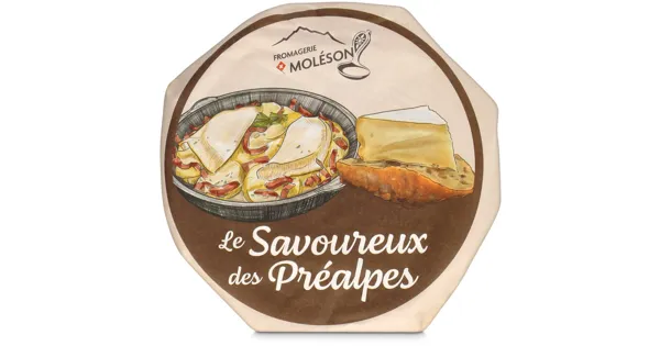 Schweizer Weichkäse, vollfett, aus thermisierter Milch – Zutaten: Schweizer WeichKÄSE, vollfett, aus thermisierter MILCH, mit Farbstoff (in der Rinde): E 160b. Zutaten: Schweizer WeichKÄSE, vollfett, aus thermisierter MILCH, mit Farbstoff (in der Rinde): E 160b.