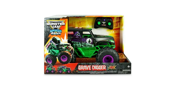 Unglaubliche Monster Jam Action: Der ferngesteuerte Smash 'n Bash Grave Digger Grave Digger rammt sich durch jedes Hindernis - und verformt sich Stück für Stück, mit jedem Crash. Aber ein Knopfdruck auf der Fernbedienung repariert ihn wieder. 2,4 GHz-Steuerung. Detailreicher, robuster Grave Digger Monstertruck mit Original-Details im Massstab 1:15. Für draussen und drinnen geeignet. Truck lädt per integriertem USB-Kabel; Batterien für Fernbedienung benötigt: 2x AAA. Ab 4 Jahren.