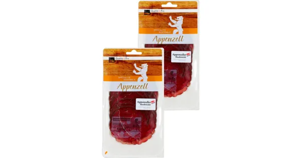 Rindfleischerzeugnis gepökelt, geräuchert Mostbröckli ist ein sorgfältig gereiftes Rindfleischprodukt, das durch seine feinaromatische Note überzeugt. Die zarte Textur und der charakteristische Geschmack eignen sich besonders für kalte Platten oder als raffinierte Zutat in Salaten und Sandwiches. Gekühlt geliefert, bleibt die Qualität von Mostbröckli bestens erhalten. – Zutaten: Rindfleisch 96% (Schweiz), Nitritpökelsalz (Kochsalz, Konservierungsstoff [E 250]), Glucose, Gewürze, Antioxidationsmittel (E 301),Konservierungsstoffe (E 202, E 252), Gewürzextrakte. Zutaten: Rindfleisch 96% (Schweiz), Nitritpökelsalz (Kochsalz, Konservierungsstoff [E 250]), Glucose, Gewürze, Antioxidationsmittel (E 301),Konservierungsstoffe (E 202, E 252), Gewürzextrakte.