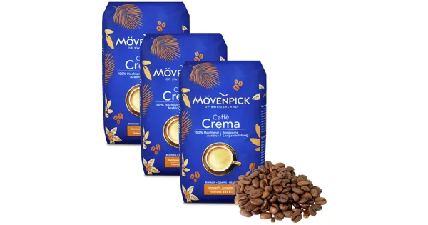 Röstkaffee in Bohnen Der vielseitige Kaffee von Mövenpick vereint ein intensives Aroma mit einer samtweichen, goldenen Crema. Die edle Mischung aus 100 % Hochland-Arabica-Bohnen begeistert durch ihr reiches Bouquet und garantiert höchsten Kaffee-Genuss. Mövenpick Caffè Cremamit seinem gehaltvollen Aroma ist sehr vielseitig einsetzbar. – Zutaten: 100% Röstkaffee in Bohnen. Zutaten: 100% Röstkaffee in Bohnen.