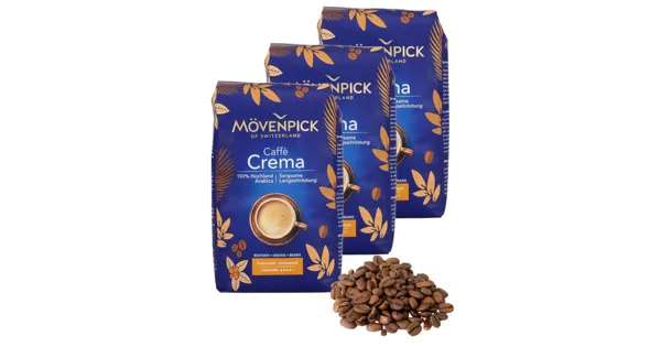 Röstkaffee in Bohnen Der vielseitige Kaffee von Mövenpick vereint ein intensives Aroma mit einer samtweichen, goldenen Crema. Die edle Mischung aus 100 % Hochland-Arabica-Bohnen begeistert durch ihr reiches Bouquet und garantiert höchsten Kaffee-Genuss. Mövenpick Caffè Cremamit seinem gehaltvollen Aroma ist sehr vielseitig einsetzbar. – Zutaten: 100% Röstkaffee in Bohnen. Zutaten: 100% Röstkaffee in Bohnen.