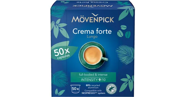 Entdecke mit Mövenpick Lungo Crema Forte deinen neuen Lieblingskaffee. Mit einer Intensität von 9/10 bietet dir jede Tasse ein vollmundiges und reichhaltiges Geschmackserlebnis, das du lieben wirst. Die hochwertigen Kapseln enthalten 100% sorgfältig gerösteten Mahlkaffee, der jeden Morgen zu einem besonderen Moment macht. Erlebe den Unterschied: Die Kapseln sind kompatibel mit deinem Nespresso-System, und die umweltschonende Verpackung besteht zu 80% aus recyceltem Aluminium.