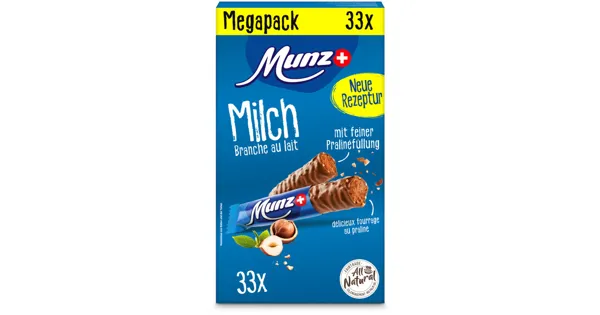 Milch-Schokoladestängel mit Pralinéfüllung 58% – Zutaten: Zucker, Kakaobutter, HASELNÜSSE (Splitter, gemahlen) (10%), Kakaomasse, VollMILCHpulver, MagerMILCHpulver, Pflanzenfett (Sheabutter, Sonnenblumenöl), SOJAmehl, MANDELN, Emulgator (SOJA-Lezithin), Vanilleextrakt. Kakao: 30% mindestens in der Schokolade. Zutaten: Zucker, Kakaobutter, HASELNÜSSE (Splitter, gemahlen) (10%), Kakaomasse, VollMILCHpulver, MagerMILCHpulver, Pflanzenfett (Sheabutter, Sonnenblumenöl), SOJAmehl, MANDELN, Emulgator (SOJA-Lezithin), Vanilleextrakt. Kakao: 30% mindestens in der Schokolade.