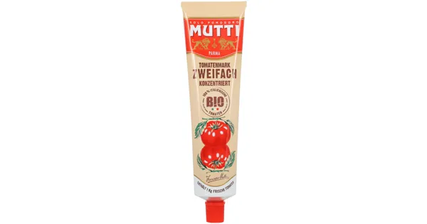 Tomaten Dreifachkonzentrat Das Mutti Bio Tomatenmark 2-fach konzentriert überzeugt mit seiner natürlichen Intensität und besteht aus 100 % biologischen Tomaten. Ideal für Saucen, Suppen oder als Basis für verschiedene Gerichte. Geniessen Sie das authentische Aroma reifer Tomaten in bester Qualität. – Zutaten: Tomaten 99.6%, Kochsalz. Zutaten: Tomaten 99.6%, Kochsalz.