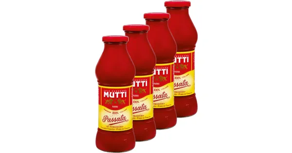 Tomatenpüree Die Mutti Passata überzeugt durch reine, sonnengereifte Tomaten, die ihr einen natürlichen und intensiven Geschmack verleihen. SDie Mutti Passata überzeugt durch 100% italienische Tomaten, die sorgfältig und reif geerntet wurden. Ihre seidige Konsistenz maie ist ideal für die Zubereitung verschiedenster Gerichte und bietet eine hervorragende Basis für Saucen und Suppen. Dank der hocht sie ideal für Pastagerichte und Saucen. Geniessen Sie den authentischen Geschmack Italiens in jeder Flasche.chwertigen Zutaten ist die Mutti Passata ein unverzichtbarer Begleiter in jeder Küche. – Zutaten: Tomaten 99.5%, Kochsalz. Zutaten: Tomaten 99.5%, Kochsalz.