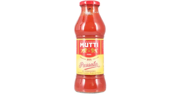 Tomatenpüree Die Mutti Passata überzeugt durch 100% italienische Tomaten, die sorgfältig und reif geerntet wurden. Ihre seidige Konsistenz macht sie ideal für Pastagerichte und Saucen. Geniessen Sie den authentischen Geschmack Italiens in jeder Flasche. – Zutaten: Tomaten 99.5%, Kochsalz. Zutaten: Tomaten 99.5%, Kochsalz.