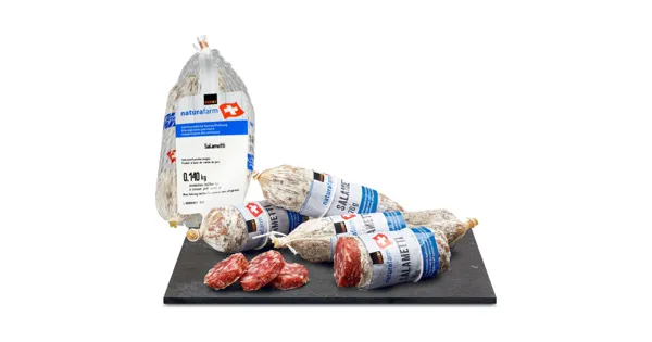 Schweinefleischerzeugnis Naturafarm Salametti überzeugt mit einer feinen, würzigen Note und charakteristischer Textur. Das gekühlte Produkt eignet sich ideal für Antipasti-Platten oder als Snack zu Brot. Die Qualität steht bei Naturafarm Salametti im Vordergrund. – Zutaten: pro 100 g: Schweinefleisch 110 g (Schweiz), Speck (Schweiz), Nitritpökelsalz (Kochsalz, Konservierungsstoff [E 250]), Gewürze, Acerolapulver, Glucose. Hülle nicht zum Verzehr geeignet. Zutaten: pro 100 g: Schweinefleisch 110 g (Schweiz), Speck (Schweiz), Nitritpökelsalz (Kochsalz, Konservierungsstoff [E 250]), Gewürze, Acerolapulver, Glucose. Hülle nicht zum Verzehr geeignet.