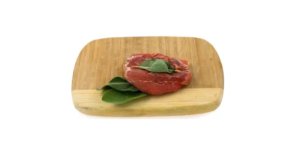 Schweinsplätzli mit Rohschinken und Salbei – Zutaten: Schweinefleisch 90% (Schweiz), Rohschinken 9% (Schweinefleisch, Kochsalz, Glucose, Gewürze, Geschmacksverstärker , Konservierungsstoff ,...