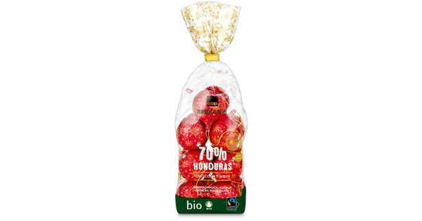 Dunkle Schweizer Schokolade – Zutaten: Kakaomasse (Honduras), Rohrzucker (Paraguay), Kakaobutter, Vanilleschoten (Madagaskar). Kann Spuren von HASELNUSS, MANDELN, MILCH, SOJA enthalten. Kakao: 70% mindestens Alle landwirtschaftlichen Zutaten stammen aus biologischer Produktion. Kakao, Zucker und Vanille wurden von Fairtrade-Produzenten angebaut, nach Fairtrade-Standards zertifiziert und gehandelt. Gesamtanteil 100%. Mehr Info: Fairtrade-Code 10281190. www.fairtrademaxhavelaar.ch. Zutaten: Kakaomasse (Honduras), Rohrzucker (Paraguay), Kakaobutter, Vanilleschoten (Madagaskar). Kann Spuren von HASELNUSS, MANDELN, MILCH, SOJA enthalten. Kakao: 70% mindestens Alle landwirtschaftlichen Zutaten stammen aus biologischer Produktion. Kakao, Zucker und Vanille wurden von Fairtrade-Produzenten angebaut, nach Fairtrade-Standards zertifiziert und gehandelt. Gesamtanteil 100%. Mehr Info: Fairtrade-Code 10281190. www.fairtrademaxhavelaar.ch.
