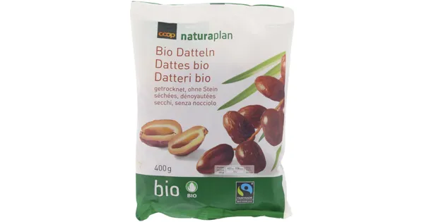 Datteln getrocknet, ohne Stein – Zutaten: Bio Datteln (Tunesien). Die Datteln wurden von Fairtrade-Produzenten angebaut, nach Fairtrade-Standards zertifiziert und gehandelt. Gesamtanteil 100%. Mehr Info: Fairtrade-Code 1028746. www.fairtrademaxhavelaar.ch. Zutaten: Bio Datteln (Tunesien). Die Datteln wurden von Fairtrade-Produzenten angebaut, nach Fairtrade-Standards zertifiziert und gehandelt. Gesamtanteil 100%. Mehr Info: Fairtrade-Code 1028746. www.fairtrademaxhavelaar.ch.