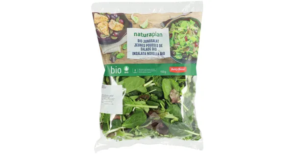 Aktion Mischsalat – Zutaten: Bio Jungsalat rot (Bio Batavia, Bio Lollo, Bio Eichblattsalat Bio Eisbergsalat), Bio Jungsalat grün (Bio Batavia, Bio Lollo, Bio Eichblattsalat Bio Eisbergsalat), Bio...
