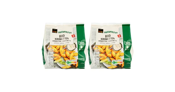 Backofen-Kroketten aus Kartoffelflocken, vorfrittiert Die Naturaplan Bio Kroketten sind eine ideale Beilage für jedes Gericht. Sie sind aus biologischen Zutaten hergestellt und bieten eine hohe Produktqualität, die man schmeckt. Mit ihrer knusprigen Hülle und dem weichen Inneren sind sie ein Genuss für jeden Gaumen. – Zutaten: Kartoffelpüree aus Flocken 77% (Wasser, Kartoffeln [Schweiz], Antioxidationsmittel [E 392]), Rapsöl High Oleic Low Linolenic (Schweiz), EIKLAR (Schweiz), MAGERMILCHPULVER (Schweiz), MILCHPROTEINPULVER (Schweiz), EIGELB (Schweiz), Maniokstärke, Kochsalz, Muskat. Alle landwirtschaftlichen Zutaten stammen aus biologischer Produktion. Zutaten: Kartoffelpüree aus Flocken 77% (Wasser, Kartoffeln [Schweiz], Antioxidationsmittel [E 392]), Rapsöl High Oleic Low Linolenic (Schweiz), EIKLAR (Schweiz), MAGERMILCHPULVER (Schweiz), MILCHPROTEINPULVER (Schweiz), EIGELB (Schweiz), Maniokstärke, Kochsalz, Muskat. Alle landwirtschaftlichen Zutaten stammen aus biologischer Produktion.