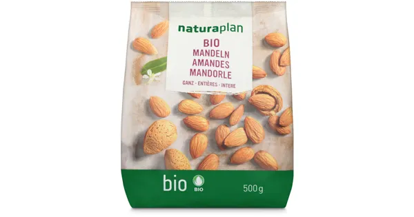 Mandeln ganz Die Naturaplan Bio Mandeln ganz überzeugen durch ihre hohe Bio-Qualität und ihren unverfälschten Geschmack. Sie eignen sich ideal zum Backen oder als knuspriger Snack für zwischendurch. Dieses vegane Produkt ist fairtrade-zertifiziert und wird ohne Kompromisse bei der Reinheit angeboten. – Zutaten: Bio MANDELN (Herkunft: siehe Datierungsfeld). Zutaten: Bio MANDELN (Herkunft: siehe Datierungsfeld).