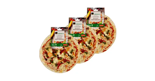 Pizza belegt mit Peperoni und 3% Basilikumsauce Die Naturaplan Bio Pizza Mediterranea überzeugt mit hochwertigen Bio-Zutaten und einem frischen Geschmack. Diese gekühlte Pizza bringt mediterranes Flair direkt zu Ihnen nach Hause und enthält aromatische Tomaten. Geniessen Sie Qualität aus biologischem Anbau. – Zutaten: WEIZENMEHL, Mozzarella 17% (MILCH [Schweiz], Kochsalz), Tomatenmarkkonzentrat, Peperoni* 10%, Mozzarella "Perlen"* 6% (MILCH [Schweiz], Kochsalz, Säuerungsmittel [E 270]), Wasser, Olivenerzeugnis 2,5% (Oliven, Meersalz, Olivenöl), Olivenöl, Kochsalz, Basilikum, Hefe, Rapsöl, HARTKÄSE (Schweiz), Rohrohrzucker, Weissweinessig, Gewürze, Zitronensaft, Knoblauch, Pinienkerne, GERSTENMALZMEHL, Reismehl. * aufgetaut Alle landwirtschaftlichen Zutaten stammen aus biologischer Produktion. Zutaten: WEIZENMEHL, Mozzarella 17% (MILCH [Schweiz], Kochsalz), Tomatenmarkkonzentrat, Peperoni* 10%, Mozzarella "Perlen"* 6% (MILCH [Schweiz], Kochsalz, Säuerungsmittel [E 270]), Wasser, Olivenerzeugnis 2,5% (Oliven, Meersalz, Olivenöl), Olivenöl, Kochsalz, Basilikum, Hefe, Rapsöl, HARTKÄSE (Schweiz), Rohrohrzucker, Weissweinessig, Gewürze, Zitronensaft, Knoblauch, Pinienkerne, GERSTENMALZMEHL, Reismehl. * aufgetaut Alle landwirtschaftlichen Zutaten stammen aus biologischer Produktion.