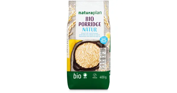Haferflocken mit Fruchtflocken Naturaplan Bio Porridge Nature bietet Ihnen einen natürlichen und schmackhaften Start in den Tag. Dieses vegane Frühstück enthält hochwertige Zutaten, darunter feine Haferflocken aus biologischem Anbau. Geniessen Sie das ausgewogene Preis-Leistungsverhältnis und die erstklassige Naturqualität von Naturaplan Bio Porridge Nature. – Zutaten: HAFERFLOCKEN, Fruchtflocken 4% (Getreidemehle [WEIZEN, ROGGEN, GERSTE], Dattelsaftkonzentrat, Apfelpüree, Bananenpüree). Alle landwirtschaftlichen Zutaten stammen aus biologischer Produktion. Zutaten: HAFERFLOCKEN, Fruchtflocken 4% (Getreidemehle [WEIZEN, ROGGEN, GERSTE], Dattelsaftkonzentrat, Apfelpüree, Bananenpüree). Alle landwirtschaftlichen Zutaten stammen aus biologischer Produktion.
