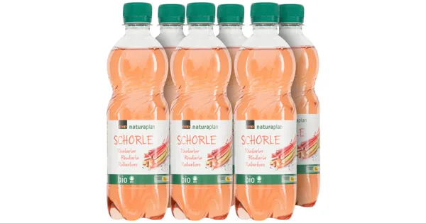 Tafelgetränk mit Rhabarbersaft, kohlensäurehaltig Naturaplan Bio Rhabarber-Schorle Tafelgetränk mit Rhabarbersaft, kohlensäurehaltig. – Zutaten: Wasser, Rhabarbersaft 25% (Deutschland), Zucker, Kohlensäure. Alle landwirtschaftlichen Zutaten stammen aus biologischer Produktion. Zutaten: Wasser, Rhabarbersaft 25% (Deutschland), Zucker, Kohlensäure. Alle landwirtschaftlichen Zutaten stammen aus biologischer Produktion.