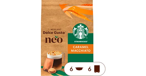 Gemahlener Röstkaffee und Voll- und Magermilchpulver mit Zucker und Karamellgeschmack NEO Dolce Gusto Caramel Macchiato 6 Pods bietet ein harmonisches Zusammenspiel von cremigem Milchschaum und...