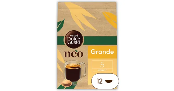 Gemahlener Röstkaffee Ein aromatisches Slow-Brew-Erlebnis. Entdecken Sie die vielfältigen Geschmacksrichtungen von NEO Grande bei Nescafé Dolce Gusto, mit fruchtigen Noten, einem Hauch von trockenem Getreide und einer Prise Honig für süsse Aromen. Sie geniessen einen in Sekundenschnelle aufgebrühten langen Grande mit einem herrlich fruchtigen Geschmacksprofil für eine ausgewogene Tasse mit einem verführerisch süssen Aroma. Die automatische Getränkeerkennung von der Nescafé Dolce Gusto NEO Kaffeemaschine von Delonghi scannt jeden heimkompostierbare Kaffee-Pod und passt den Brühvorgang mit der SmartBrew Technologie an, so dass jeder Grande langsam im Filterkaffee-Stil gebrüht wird. Jeder Tropfen Geschmack und jedes Aroma wird langsam in Ihre grosse Kaffeetasse extrahiert - so wie ein Grande sein sollte. Wenn Sie Ihre Nescafé Dolce Gusto NEO-Kaffeemaschine von Delonghi mit unserer App verbinden, können Sie ganz einfach die Menge und Temperatur Ihres NEO Grande bei Nescafé Dolce Gusto anpassen und Ihre Vorlieben für den nächsten Brühvorgang speichern. Unsere Kaffeebohnen werden zu 100 % verantwortungsvoll beschafft. Die NEO bei Nescafé Dolce Gusto Kaffee-Podssind auf Papierbasis hergestellt und können nach Gebrauch heimkompostiert werden. Wenn Sie keine Kompostmöglichkeit zu Hause haben, können Sie unseren Service Recycling@Home nutzen. Wir holen die Pods ab und kompostieren sie für Sie. Weitere Informationenfinden Sie auf die Recyclingbeutel Produktseite. Die NEO bei Nescafé Dolce Gusto Kaffee-Pods auf Papierbasis sind nur mitder neuen Nescafé Dolce Gusto NEO Kaffeemaschine von Delonghi kompatibel.