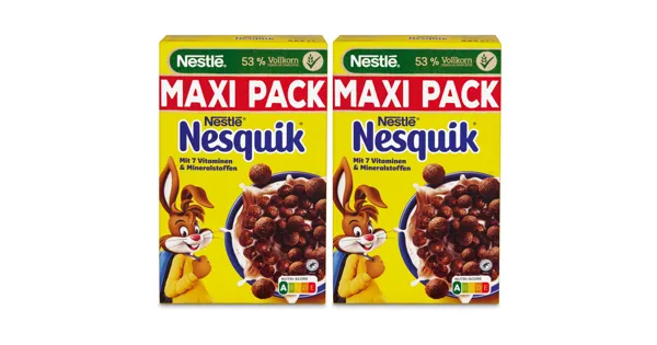 Geröstete Getreidefrühstück mit fettarmem Kakao Nesquik Cerealien: Für Spass und Kreativität am Morgen. Nestlé Nesquik Cerealien sind lecker knusprige Cerealien mit Vollkorn (53%) als Zutat Nr. 1....