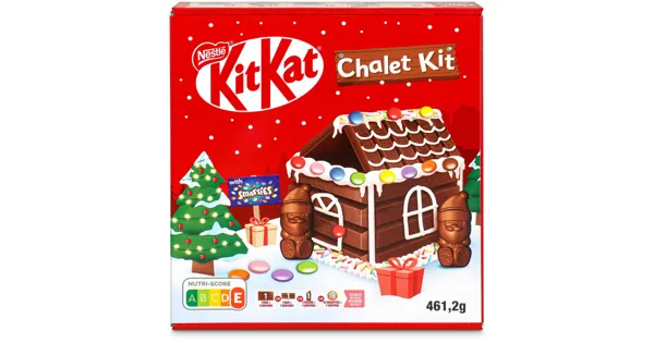 KITKAT Santa: Milchschokolade mit einer Füllung mit fettarmem Kakao, Knuspercerealien, Keksstückchen und Waffelstückchen. KITKAT 4F : Knusperwaffel in Milchschokolade (66%). MILCHSCHOKOLADE ENTHÄLT NEBEN KAKAOBUTTER AUCH ANDERE PFLANZLICHE FETTE. KITKAT 2F : Knusperwaffel in Milchschokolade (68,4%). MILCHSCHOKOLADE ENTHÄLT NEBEN KAKAOBUTTER AUCH ANDERE PFLANZLICHE FETTE. SMARTIES Classic : Schokolinsen (65% Milchschokolade) mit Zuckerüberzug. MILCHSCHOKOLADE ENTHÄLT NEBEN KAKAOBUTTER AUCH ANDERE Ob Sie einen besonderen Anlass feiern oder einfach nur einen gemütlichen Moment zusammen in der Wintersaison geniessen, das KitKat Chalet ist die ultimative Wahl für alle Schokoladenliebhaber. Bauen Sie Ihr eigenes Chalet mit KitKat-Produkten, Zuckerguss und Smarties. Perfekt für Familienzeit bietet das KitKat Chalet ein lustiges und kreatives Erlebnis. Geniessen Sie diese unwiderstehliche Leckerei und entfalten Sie Ihre Kreativität! – Zutaten: Zuckerguss: Zutaten: Zucker, Glukosesirup, Wasser, Rapsöl, Palmöl, Emulgatoren (Mono- und Diglyceride von Speisefettsäuren, Polyglycerinester von Speisefettsäuren), Konservierungsstoff (Kaliumsorbat), Säureregulator (Citronensäure), Aroma. Bunte Zuckerstreusel Zutaten: Zucker, pfanzliche Öle (Kokosnuss, shea), Frucht- und Pflanzenkonzentrate (Süsskartoffel, Apfel, Rettich), Spirulinakonzentrat, Stabilisator (Gummi arabicum), Farbstoff (Paprikaextrakt, Lutein), Überzugsmittel (Bienenwachs weiss), SMARTIES Classic Zutaten: Zucker, MAGERMILCHPULVER, Kakaomasse¹, Kakaobutter¹, Glukosesirup, WEIZENMEHL, MOLKENERZEUGNIS, BUTTERREINFETT, pflanzliche Fette (Palm, Shea), Stärke, Emulgator Lecithine, Farbstoff (Betenrot, Carotin, Kurkumin), Spirulinakonzentrat, Überzugsmittel (Carnaubawachs, Bienenwachs weiss), Pflanzenkonzentrate (Färberdistel, Rettich), GERSTENMALZEXTRAKT. KITKAT 2 Finger mini Zutaten: Zucker, WEIZENMEHL, MAGERMILCHPULVER, Kakaomasse¹, pflanzliche Fette (Palm, Shea), Kakaobutter¹, MOLKENERZEUGNIS, Glukosesirup, BUTTERREINFETT, fettarmer Kakao¹, Emulgator Lecithine, Backtriebmittel Natriumcarbonate. NESTLE KIT KAT SANTA 11g Zutaten: Zucker, pflanzliche Fette (Palm, Raps in veränderlichen Gewichtsanteilen), MAGERMILCHPULVER, Kakaobutter¹, Kakaomasse¹, LAKTOSE, Knusperreis 3,6% [Reismehl, Zucker, MOLKENERZEUGNIS, Backtriebmittel (Natriumcarbonate), Salz, natürliches Vanillearoma], magerer Kakao¹ 3,5%, Reiskekspulver 2,7% [Reismehl, Kartoffelstärke, Zucker, Palmöl, Backtriebmittel (Natriumcarbonate), Salz, natürliches Aroma], MOLKENERZEUGNIS, BUTTERREINFETT, Waffelstücke 0,8% [Reismehl, Zucker, Maisstärke, Palmöl, Maismehl, Emulgator (Lecithine), Salz], Emulgator (Lecithine). KITKAT 4Finger milk Zutaten: Zucker, WEIZENMEHL (mit Calcium, Eisen, Thiamin, Niacin),VOLLMILCHPULVER, Kakaomasse¹, Kakaobutter¹, pflanzliche Fette (Palm, Shea, Palmkern, Sal), MOLKENERZEUGNIS, MAGERMILCHPULVER, Emulgator (Lecithine), Hefe, Backtriebmittel (Natriumcarbonate), Glukosesirup, BUTTERREINFETT, MOLKENERZEUGNIS, natürliche Aromen. Zutaten: Zuckerguss: Zutaten: Zucker, Glukosesirup, Wasser, Rapsöl, Palmöl, Emulgatoren (Mono- und Diglyceride von Speisefettsäuren, Polyglycerinester von Speisefettsäuren), Konservierungsstoff (Kaliumsorbat), Säureregulator (Citronensäure), Aroma. Bunte Zuckerstreusel Zutaten: Zucker, pfanzliche Öle (Kokosnuss, shea), Frucht- und Pflanzenkonzentrate (Süsskartoffel, Apfel, Rettich), Spirulinakonzentrat, Stabilisator (Gummi arabicum), Farbstoff (Paprikaextrakt, Lutein), Überzugsmittel (Bienenwachs weiss), SMARTIES Classic Zutaten: Zucker, MAGERMILCHPULVER, Kakaomasse¹, Kakaobutter¹, Glukosesirup, WEIZENMEHL, MOLKENERZEUGNIS, BUTTERREINFETT, pflanzliche Fette (Palm, Shea), Stärke, Emulgator Lecithine, Farbstoff (Betenrot, Carotin, Kurkumin), Spirulinakonzentrat, Überzugsmittel (Carnaubawachs, Bienenwachs weiss), Pflanzenkonzentrate (Färberdistel, Rettich), GERSTENMALZEXTRAKT. KITKAT 2 Finger mini Zutaten: Zucker, WEIZENMEHL, MAGERMILCHPULVER, Kakaomasse¹, pflanzliche Fette (Palm, Shea), Kakaobutter¹, MOLKENERZEUGNIS, Glukosesirup, BUTTERREINFETT, fettarmer Kakao¹, Emulgator Lecithine, Backtriebmittel Natriumcarbonate. NESTLE KIT KAT SANTA 11g Zutaten: Zucker, pflanzliche Fette (Palm, Raps in veränderlichen Gewichtsanteilen), MAGERMILCHPULVER, Kakaobutter¹, Kakaomasse¹, LAKTOSE, Knusperreis 3,6% [Reismehl, Zucker, MOLKENERZEUGNIS, Backtriebmittel (Natriumcarbonate), Salz, natürliches Vanillearoma], magerer Kakao¹ 3,5%, Reiskekspulver 2,7% [Reismehl, Kartoffelstärke, Zucker, Palmöl, Backtriebmittel (Natriumcarbonate), Salz, natürliches Aroma], MOLKENERZEUGNIS, BUTTERREINFETT, Waffelstücke 0,8% [Reismehl, Zucker, Maisstärke, Palmöl, Maismehl, Emulgator (Lecithine), Salz], Emulgator (Lecithine). KITKAT 4Finger milk Zutaten: Zucker, WEIZENMEHL (mit Calcium, Eisen, Thiamin, Niacin),VOLLMILCHPULVER, Kakaomasse¹, Kakaobutter¹, pflanzliche Fette (Palm, Shea, Palmkern, Sal), MOLKENERZEUGNIS, MAGERMILCHPULVER, Emulgator (Lecithine), Hefe, Backtriebmittel (Natriumcarbonate), Glukosesirup, BUTTERREINFETT, MOLKENERZEUGNIS, natürliche Aromen.