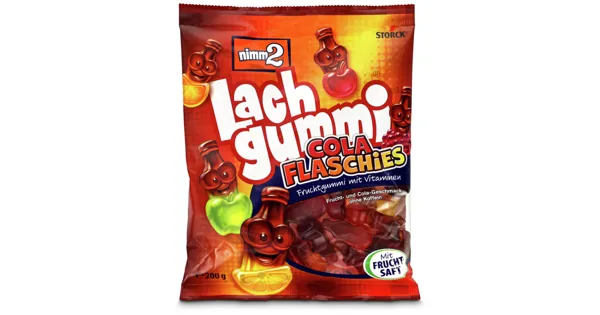 Fruchtgummi mit Vitaminen und Cola-Geschmack – Zutaten: Glukosesirup, Zucker, Gelatine, Traubensaft (5%) aus Traubensaftkonzentrat, Säuerungsmittel (Citronensäure, Milchsäure), Karamellzuckersirup, Aromen, färbende Konzentrate (Schwarze Karotte, Spirulina), Niacin, Vitamin E, Pantothensäure, Vitamin B6, färbende Auszüge (Paprika, Kurkuma), Biotin, Vitamin B12, Überzugsmittel Carnaubawachs. KANN AUCH MILCH ENTHALTEN. Zutaten: Glukosesirup, Zucker, Gelatine, Traubensaft (5%) aus Traubensaftkonzentrat, Säuerungsmittel (Citronensäure, Milchsäure), Karamellzuckersirup, Aromen, färbende Konzentrate (Schwarze Karotte, Spirulina), Niacin, Vitamin E, Pantothensäure, Vitamin B6, färbende Auszüge (Paprika, Kurkuma), Biotin, Vitamin B12, Überzugsmittel Carnaubawachs. KANN AUCH MILCH ENTHALTEN.