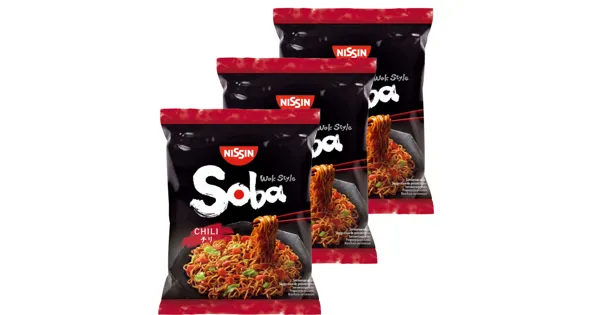 Gebratene Weizennudeln nach japanischer Art, Chili-Geschmack Entdecken Sie den köstlichen Geschmack von Nissin Soba gebratene Nudeln, perfekt für eine schnelle und unkomplizierte Mahlzeit. Mit einer authentisch asiatischen Note und feinen Gewürzen bieten diese gebratenen Nudeln ein hervorragendes Preis-Leistungs-Verhältnis. Die ideale Wahl für alle, die in kürzester Zeit ein geschmackvolles Gericht auf den Tisch bringen möchten. – Zutaten: Nudeln 81, 3% [WEIZENMEHL, Palmöl, Salz, Mehlbehandlungsmittel (E500, E451), Stabilisator E501, Verdickungsmittel E412, AntioxidansE306], Würzsosse 18, 0% [Zucker, Wasser, Dextrose, Rapsöl, Salz, Geschmacksverstärker (E621, E635), Essig, SOJA Sauce (Wasser, SOJABOHNEN, Salz, WEIZEN), Melasse, Farbstoff E150c, Gewürze, hydrolysiertes pflanzliches Eiweiss, Tomatenpulver, Säureregulator: Zitronensäure, Chili (0,5% in Würzsauce), Aroma], Frühlingszwiebeln. Kann Spuren von SELLERIE, KREBSTIEREN, FISCHEN, MILCH, WEICHTIEREN, SENF und SESAM enthalten. Zutaten: Nudeln 81, 3% [WEIZENMEHL, Palmöl, Salz, Mehlbehandlungsmittel (E500, E451), Stabilisator E501, Verdickungsmittel E412, AntioxidansE306], Würzsosse 18, 0% [Zucker, Wasser, Dextrose, Rapsöl, Salz, Geschmacksverstärker (E621, E635), Essig, SOJA Sauce (Wasser, SOJABOHNEN, Salz, WEIZEN), Melasse, Farbstoff E150c, Gewürze, hydrolysiertes pflanzliches Eiweiss, Tomatenpulver, Säureregulator: Zitronensäure, Chili (0,5% in Würzsauce), Aroma], Frühlingszwiebeln. Kann Spuren von SELLERIE, KREBSTIEREN, FISCHEN, MILCH, WEICHTIEREN, SENF und SESAM enthalten.