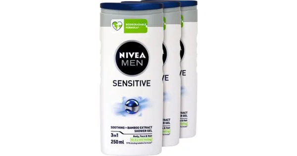 Die Pflegedusche Sensitive von Nivea Men pflegt die sensible Haut und das Haar unter der Dusche dank enthaltenem Bambusextrakt. Das Duschgel, das sich unter der Dusche in einen sanften Schaum verwandelt, spendet intensive Feuchtigkeit und sorgt für eine langanhaltende Frische.