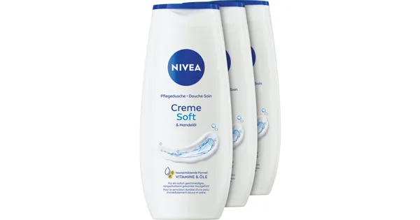 Die reichhaltige Pflegedusche Creme Soft von Nivea reinigt die Haut sanft und pflegt sie mit wertvollem Vitamin C und E sowie Mandelöl. Die Formel sorgt für ein spürbar weiches und seidiges Hautgefühl.