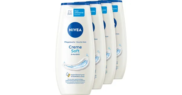 Die reichhaltige Pflegedusche Creme Soft von Nivea reinigt die Haut sanft und pflegt sie mit wertvollem Vitamin C und E sowie Mandelöl. Die Formel sorgt für ein spürbar weiches und seidiges Hautgefühl.