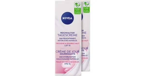 Die Nivea reichhaltige Tagescreme mit LSF 15 bietet dir eine intensive Pflege für den Tag, die deine Haut mit Feuchtigkeit versorgt und gleichzeitig vor schädlichen UV-Strahlen schützt. Die reichhaltige Formel pflegt trockene Haut intensiv, während der Lichtschutzfaktor 15 vor vorzeitiger Hautalterung durch Sonneneinstrahlung schützt. Geniesse das angenehme Hautgefühl und den zuverlässigen Schutz vor Umwelteinflüssen. Mit der Nivea reichhaltigen Tagescreme mit LSF 15 schenkst du deiner Haut eine ausgewogene Pflege, die sie den ganzen Tag über verwöhnt und schützt.
