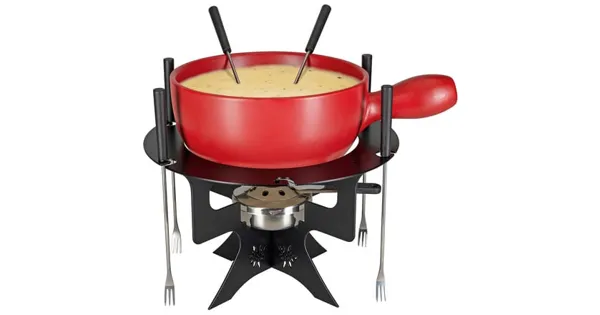 Lass dich mit dem Käsefondue-Set von Nouvel von der traditionellen feuerfesten Keramik begeistern, die deinen Käse perfekt schmelzen lässt. Mit einem Fassungsvermögen von 2 Litern bietet der Caquelon genug Platz für köstliche Genussmomente mit deinen Freunden und deiner Familie. Das stilvolle Rechaud hält deinen Käse stets auf optimaler Temperatur, während die sechs Gabeln jedem einen Platz am Tisch sichern.