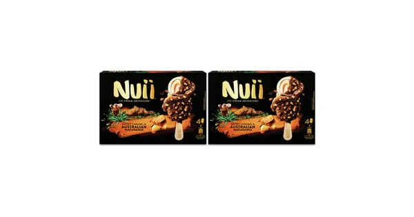 Rahmglace und gesalzener Karamellsauce (5.5%), überzogen mit Milchschokolade (32%) und karamellisierten australischen Macadamianuss-Stückchen – Zutaten: Rekonstituierte MAGERMILCH, Zucker, RAHM 12%, Glukosesirup, Kakaobutter, MAGERMILCHPULVER, australische MACADAMIANUSSSTÜCKCHEN 2.5%, BUTTERREINFETT, MOLKENPULVER, Kakaomasse, Wasser, gesalzenes Karamell 1.3% (Zucker, gezuckerte KONDENSMILCH ( VOLLMILCH, Zucker), Wasser, Glukosesirup, BUTTER, Salz 0.002%), MILCHZUCKER, Emulgatoren (Mono- und Diglyceride von Speisefettsäuren, Lecithine (SOJA), E476), Stabilisatoren (Johannisbrotkernmehl, Guarkernmehl), färbendes Karottenkonzentrat, Salz 0.1%, Invertzuckersirup, Vanilleextrakt, Geliermittel (Pektine) Kann Spuren von EIER, ERDNÜSSE, MANDELN, HASELNÜSSE, WALNÜSSE, CASHEWNÜSSE, PECANNÜSSE, PARANÜSSE und PISTAZIEN enthalten. Zutaten: Rekonstituierte MAGERMILCH, Zucker, RAHM 12%, Glukosesirup, Kakaobutter, MAGERMILCHPULVER, australische MACADAMIANUSSSTÜCKCHEN 2.5%, BUTTERREINFETT, MOLKENPULVER, Kakaomasse, Wasser, gesalzenes Karamell 1.3% (Zucker, gezuckerte KONDENSMILCH ( VOLLMILCH, Zucker), Wasser, Glukosesirup, BUTTER, Salz 0.002%), MILCHZUCKER, Emulgatoren (Mono- und Diglyceride von Speisefettsäuren, Lecithine (SOJA), E476), Stabilisatoren (Johannisbrotkernmehl, Guarkernmehl), färbendes Karottenkonzentrat, Salz 0.1%, Invertzuckersirup, Vanilleextrakt, Geliermittel (Pektine) Kann Spuren von EIER, ERDNÜSSE, MANDELN, HASELNÜSSE, WALNÜSSE, CASHEWNÜSSE, PECANNÜSSE, PARANÜSSE und PISTAZIEN enthalten.
