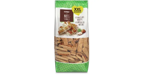 Dauerbackware – Zutaten: Weissmehl (WEIZEN), Zucker, HASELNÜSSE 24%, Kartoffelstärke, Rapsöl, Rapsöl ganz gehärtet, MAGERMILCHPULVER, GERSTENMALZEXTRAKT, Kochsalz, Backtriebmittel (E 503). Kann...