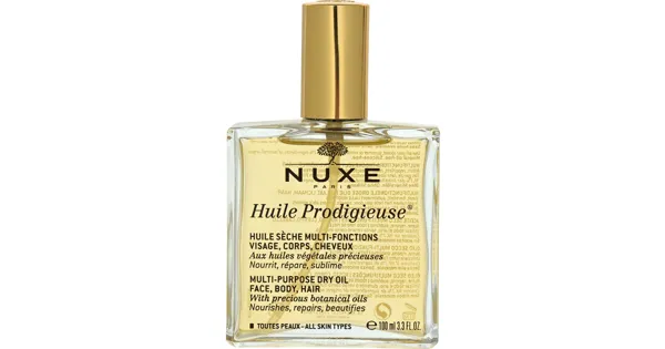Das verwöhnende Trockenöl Huile Prodigieuse von Nuxe nährt, repariert und perfektioniert Gesicht, Körper und Haar. Die besonders innovative Zusammensetzung hat eine antioxidative Wirkung und ist aus Inhaltsstoffen natürlichen Ursprungs. Die schnell einziehende Textur, die 7 enthaltenen wertvollen Pflanzenöle und der angenehm-zarte Duft nach Orangenblüten, Magnolie und Vanille machen das Öl zu einem Beauty-Must-have. Für optimale Ergebnisse wird das silikonfreie Trockenöl einmal pro Tag auf Dekolleté, Arme, Bauch, Brust oder Beine einmassiert. Zur Haarpflege wird das Öl vor dem Haarewaschen grosszügig in Form einer Haarmaske aufgetragen. Zur Pflege trockener Spitzen kann das Wunderelixier sparsam in die Haarenden verteilt werden.