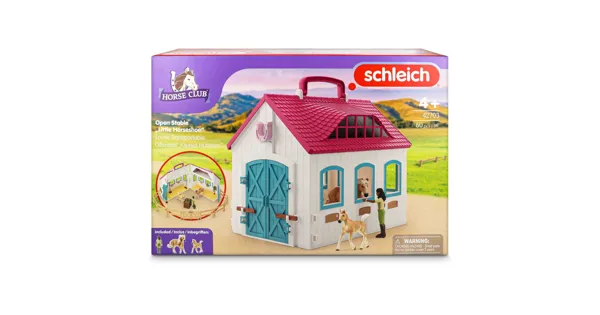 Der Offenstall „Kleines Hufeisen“ von Lakeside lässt sich praktisch zu einem Koffer zusammenklappen und überallhin mitnehmen. Das umfangreiche Zubehör wie die Heuballen, das Bündel Möhren oder der...