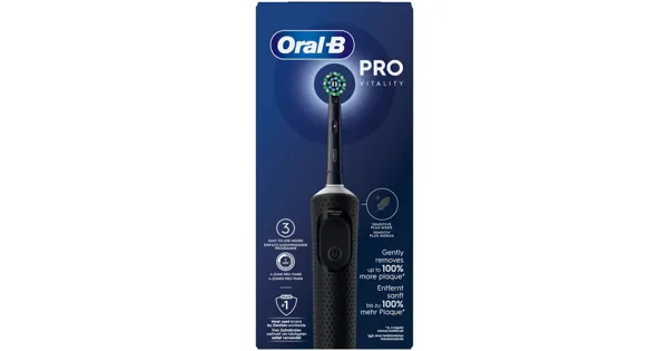 Die Oral-B Vitality Pro wiederaufladbare elektrische Zahnbürste bietet eine klinisch bestätigte überlegene Reinigung im Vergleich zu herkömmlichen Handzahnbürsten. Die Vitality Pro verfügt über 3...