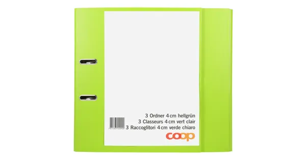 Der Ordner 4cm hellgrün bringt mit seiner frischen hellgrünen Farbe Organisation und Stil in Ihren Arbeitsalltag. Mit einer Rückenbreite von 4 cm und einem austauschbaren Rückenschild ist er praktisch und individuell anpassbar. Perfekt für den Bürobedarf, bietet er eine robuste Lösung für Ihre Dokumentenablage.