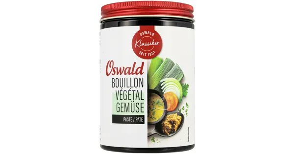 Gemüsebouillon Die Oswald Gemüse Bouillon Végétal Paste überzeugt durch ihr ausgewogenes Aroma und ihren natürlichen Geschmack. Diese Bouillon ist ideal, um Suppen, Saucen und Eintöpfen eine...