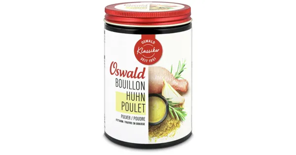 Hühnerbouillon Die Oswald Hühnerbouillon Fettarm Pulver ist eine praktische und fettarme Lösung für schmackhafte Gerichte. Mit ihrer ausgewogenen Rezeptur verleiht sie Suppen, Saucen und anderen...