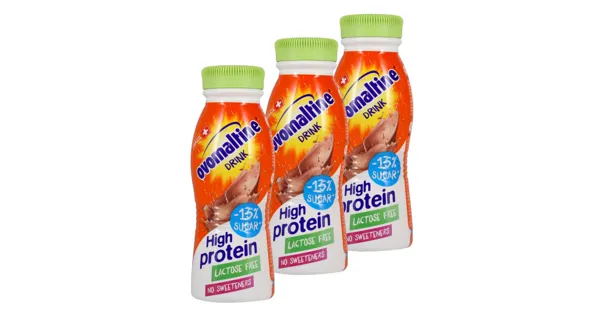 Laktosefreies Milchgetränk mit Malzextrakt und Kakao, UHT Der Ovo Proteindrink vereint köstlichen Schokoladengeschmack mit einem hohen Proteingehalt und wird gekühlt genossen. Er ist die ideale Wahl für alle, die Wert auf einen eiweissreichen Genuss legen. Perfekt abgestimmt für einen aktiven Lebensstil und einfache Anwendung unterwegs. – Zutaten: 88.7% MAGERMILCH laktosefrei, 5% GERSTENMALZEXTRAKT, Zucker, VOLLRAHM laktosefrei, 1.2% fettarmes Kakaopulver, Mineralstoffe (Dicalciumphosphat, Magnesiumcarbonat), Verdickungsmittel Carrageen, Vitamine (E, Thiamin, Riboflavin, Niacin, B6, B12, Biotin, Pantothensäure), Aroma Vanillin, Speisesalz. Zutaten: 88.7% MAGERMILCH laktosefrei, 5% GERSTENMALZEXTRAKT, Zucker, VOLLRAHM laktosefrei, 1.2% fettarmes Kakaopulver, Mineralstoffe (Dicalciumphosphat, Magnesiumcarbonat), Verdickungsmittel Carrageen, Vitamine (E, Thiamin, Riboflavin, Niacin, B6, B12, Biotin, Pantothensäure), Aroma Vanillin, Speisesalz.