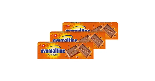 Biscuits mit Täfelchen aus Schweizer Milchschokolade mit Ovomaltine* – Zutaten: 52% Milchschokolade [Zucker, Kakaobutter, 16% malzhaltiges Getränkepulver* Ovomaltine (GERSTENMALZEXTRAKT, kondensierte MAGERMILCH,kondensiertes MILCHSERUM, fettarmes Kakaopulver, Zucker, Fruktose, Mineralstoffe (Magnesiumcarbonat, Dicalciumphosphat), Rapsöl, Vitamine (A, E, C, Thiamin, Riboflavin, Niacin, B6, Folsäure, B12, Biotin, Pantothensäure), Speisesalz, Aroma Vanillin), VOLLMILCHPULVER, Kakaomasse, MAGERMILCHPULVER, HASELNÜSSE, Emulgator SOJALECITHIN, natürliches Aroma], WEIZENMEHL, Zucker, Maisstärke, pflanzliche Fette (Palm, Kokos), MAGERMILCHPULVER, 1.4% BUTTERREINFETT, fettarmes Kakaopulver, Invertzuckersirup, Maltodextrin, Backtriebmittel (Natriumhydrogencarbonat, Dinatriumdiphosphat), Speisesalz, Emulgator SOJALECITHIN, 0.2% BUTTER, HASELNÜSSE, MILCHSERUMPULVER, Aroma Vanillin. Kann enthalten: Mandeln. Kakao: 32% mindestens in der Schokolade. Zutaten: 52% Milchschokolade [Zucker, Kakaobutter, 16% malzhaltiges Getränkepulver* Ovomaltine (GERSTENMALZEXTRAKT, kondensierte MAGERMILCH,kondensiertes MILCHSERUM, fettarmes Kakaopulver, Zucker, Fruktose, Mineralstoffe (Magnesiumcarbonat, Dicalciumphosphat), Rapsöl, Vitamine (A, E, C, Thiamin, Riboflavin, Niacin, B6, Folsäure, B12, Biotin, Pantothensäure), Speisesalz, Aroma Vanillin), VOLLMILCHPULVER, Kakaomasse, MAGERMILCHPULVER, HASELNÜSSE, Emulgator SOJALECITHIN, natürliches Aroma], WEIZENMEHL, Zucker, Maisstärke, pflanzliche Fette (Palm, Kokos), MAGERMILCHPULVER, 1.4% BUTTERREINFETT, fettarmes Kakaopulver, Invertzuckersirup, Maltodextrin, Backtriebmittel (Natriumhydrogencarbonat, Dinatriumdiphosphat), Speisesalz, Emulgator SOJALECITHIN, 0.2% BUTTER, HASELNÜSSE, MILCHSERUMPULVER, Aroma Vanillin. Kann enthalten: Mandeln. Kakao: 32% mindestens in der Schokolade.