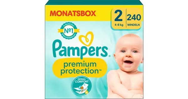 Komfort und Schutz von Pampers für empfindliche Babyhaut. Längerer Kontakt mit Urin und Stuhl kann die empfindliche Babyhaut reizen und so unangenehm für dein Baby werden. Pampers Premium Protection Windeln wurden speziell entwickelt, um den weichsten Komfort und Schutz von Pampers zu bieten:1) Das DERMACOMFORT Innenvlies mit saugfähigen Poren nimmt Feuchtigkeit und flüssigen Stuhl sofort auf und leitet sie weg von der Haut in den Windelkern. So bleibt die empfindliche Babyhaut trocken und geschützt.2) Millionen von Mikroporen lassen die Luft in der Windel zirkulieren und halten die Babyhaut trocken.3) Bis zu 100 % Auslaufschutz dank eines einzigartigen 3-fach-Schutz-Systems, das Flüssigkeit schnell absorbiert und vor Auslaufen an Bäuchlein und Beinchen schützt.4) Ultra weiche Materialien sorgen für Komfort und Schutz.Pampers Premium Protection Windeln – die Nr.1 in deutschen Geburtsstationen (basierend auf Januar 2023 Verteilungsdaten in Geburtsstationen in Deutschland) – sind 100 % sicher für die Babyhaut: sie sind dermatologisch getestet und frei von 26 EU-Parfümallergenen.