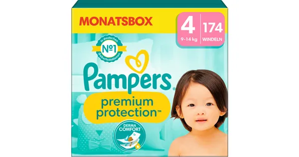 Komfort und Schutz von Pampers für empfindliche Babyhaut. Längerer Kontakt mit Urin und Stuhl kann die empfindliche Babyhaut reizen und so unangenehm für dein Baby werden. Pampers Premium Protection Windeln wurden speziell entwickelt, um den weichsten Komfort und Schutz von Pampers zu bieten:1) Das DERMACOMFORT Innenvlies mit saugfähigen Poren nimmt Feuchtigkeit und flüssigen Stuhl sofort auf und leitet sie weg von der Haut in den Windelkern. So bleibt die empfindliche Babyhaut trocken und geschützt.2) Millionen von Mikroporen lassen die Luft in der Windel zirkulieren und halten die Babyhaut trocken.3) Bis zu 100 % Auslaufschutz dank eines einzigartigen 3-fach-Schutz-Systems, das Flüssigkeit schnell absorbiert und vor Auslaufen an Bäuchlein und Beinchen schützt.4) Ultra weiche Materialien sorgen für Komfort und Schutz.Pampers Premium Protection Windeln – die Nr.1 in deutschen Geburtsstationen (basierend auf Januar 2023 Verteilungsdaten in Geburtsstationen in Deutschland) – sind 100 % sicher für die Babyhaut: sie sind dermatologisch getestet und frei von 26 EU-Parfümallergenen.