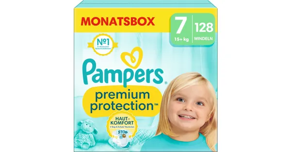 Mit den Pampers Premium Protection Gr. 7 (15+ kg) Monatsbox 128er erlebt dein Baby höchsten Komfort. Diese Windeln bieten deinem Schatz den optimalen Schutz und sorgen für ein angenehm trockenes...