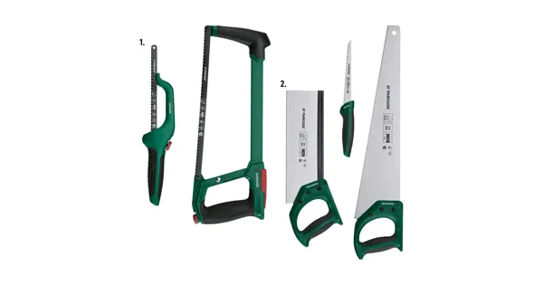 , Für Holz und Gipskarton; 3-tlg: 1x Handsäge, 1x Rückensäge, 1x Stichsäge , Für Metall; 6-tlg: 1x Metallsägebogen inkl. 2x Sägeblatt, 1x Mini-Bügelsäge inkl. 2x Sägeblatt , Pro Set