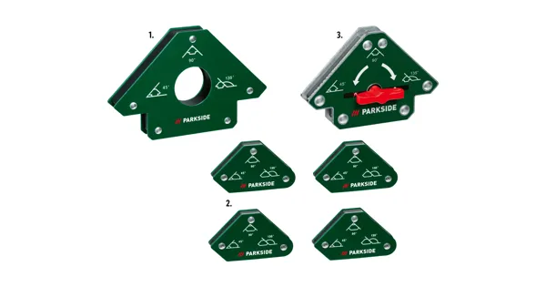 , 5-Zoll-Magnethalter , Für winkelgenaues Halten flacher Werkstücke aus Eisenmetall , Masse: 190 x 122 x 25 mm , Mini-Schweissmagnet-Set, 4-tlg. , Praktischer Helfer beim Schweissen, Markieren, Löten, Anreissen, Montieren, bei der Rohrinstallation und zum Aufsammeln von Metallteilen , Masse: 72 x 42 x 13 mm , Schaltbarer Schweissmagnet , Praktischer Helfer beim Schweissen, Löten und...