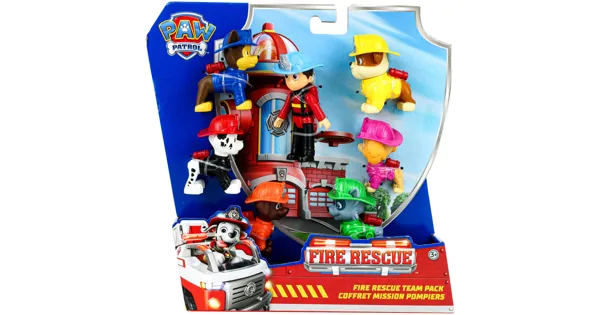 Die Abenteuerbucht bekommt eine Feuerwache. Als es beim Eröffnungsgrillfest aber zu einer Katastrophe kommt, muss die PAW Patrol mal wieder die Situation retten. Der Feueralarm lässt nicht lange auf sich warten. Zum Glück sind die tierischen Helden in ihren neuen Feuerwehr-Uniformen mit passenden Helmen perfekt ausgerüstet. In dem PAW Patrol Fire Rescue Geschenkset mit 7 Spielfiguren sind Ryder und alle seine tierischen Helden enthalten: Chase, Marshall, Skye, Rubble, Rocky und Zuma. Jede Figur ist liebevoll im neuen Fire Rescue Look gestaltet und sieht genau so cool aus wie in der Serie. Dieses Set ist ein tolles Geschenk für alle Kinder ab 3 Jahren und ein Muss für Sammler. Für noch mehr Action im Kinderzimmer sind auch alle Charaktere mit ihren neuen Fire Rescue Fahrzeugen als Set sowie auch ein Deluxe Feuerwehr-Fahrzeug separat erhältlich. Die neue Feuerwehr-Station sorgt für ganz besonderen Spass beim Spielen.