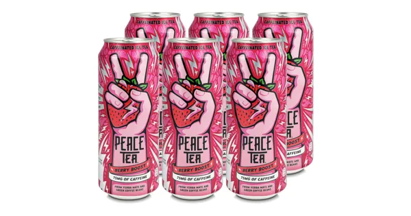 Koffeinhaltiges Schwarztee-Getränk mit Beerengeschmack und mit Yerba Mate. Mit Zucker und Süssungsmittel Peace Tea Berry Boost vereint harmonisch fruchtige Beerenaromen mit einem erfrischenden Tee-Genuss. Das spritzige Getränk eignet sich ideal für eine kleine Auszeit und sorgt für einen Moment der Erfrischung. Geniessen Sie den perfekten Mix aus belebendem Geschmack und entspannter Leichtigkeit. – Zutaten: Wasser, Zucker, Säuerungsmittel: Citronensäure und Apfelsäure, natürliche Aromen, Schwarztee-Extrakt (0.12%), Erdbeersaft aus Erdbeersaftkonzentrat (0.1%), Säureregulator: Natriumcitrate, Antioxidationsmittel: Ascorbinsäure, Süssungsmittel: Steviolglycoside aus Stevia, Koffein, Yerba Mate. Zutaten: Wasser, Zucker, Säuerungsmittel: Citronensäure und Apfelsäure, natürliche Aromen, Schwarztee-Extrakt (0.12%), Erdbeersaft aus Erdbeersaftkonzentrat (0.1%), Säureregulator: Natriumcitrate, Antioxidationsmittel: Ascorbinsäure, Süssungsmittel: Steviolglycoside aus Stevia, Koffein, Yerba Mate.