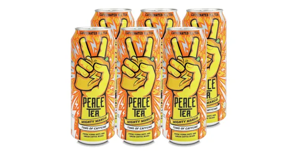 Koffeinhaltiges Schwarztee-Getränk mit Mangogeschmack und mit Yerba Mate. Mit Zucker und Süssungsmittel Peace Tea Mighty Mango überzeugt mit einem fruchtigen Mangoaroma und erfrischendem Geschmack. Das Erfrischungsgetränk ist ideal für alle, die einen fruchtbetonten Moment geniessen möchten. Perfekt gekühlt sorgt es für Genuss in jeder Situation. – Zutaten: Wasser, Zucker, Säuerungsmittel: Citronensäure, Schwarztee-Extrakt (0.12%), natürliche Aromen, Mangosaft aus Mangosaftkonzentrat (0.1%), Säureregulator: Natriumcitrate, Antioxidationsmittel: Ascorbinsäure, Süssungsmittel: Steviolglycoside aus Stevia, Koffein, Yerba Mate. Zutaten: Wasser, Zucker, Säuerungsmittel: Citronensäure, Schwarztee-Extrakt (0.12%), natürliche Aromen, Mangosaft aus Mangosaftkonzentrat (0.1%), Säureregulator: Natriumcitrate, Antioxidationsmittel: Ascorbinsäure, Süssungsmittel: Steviolglycoside aus Stevia, Koffein, Yerba Mate.